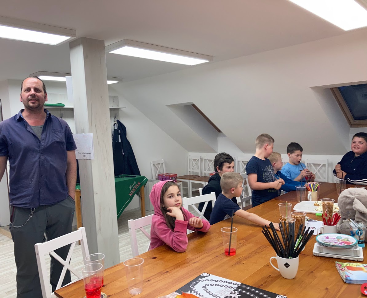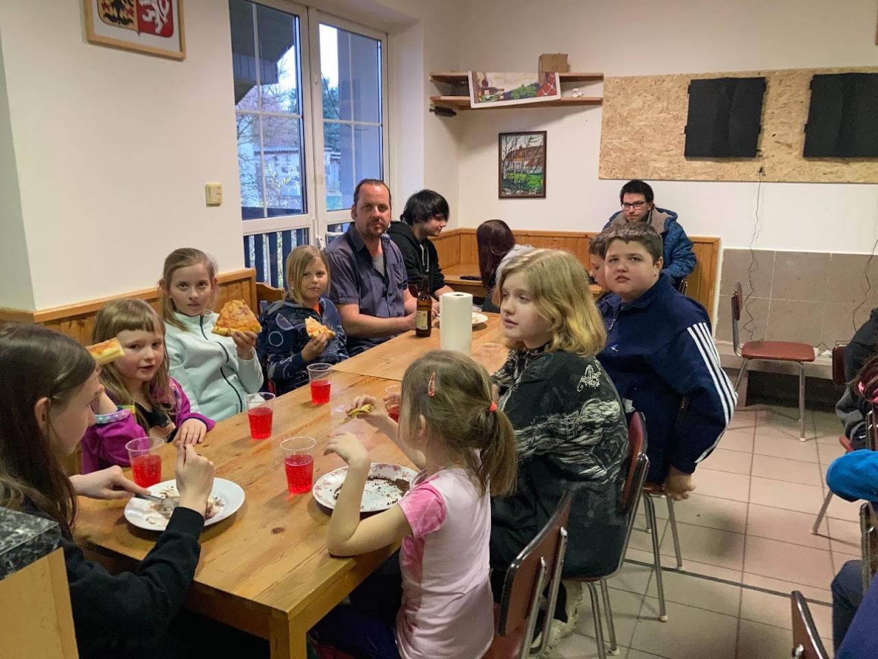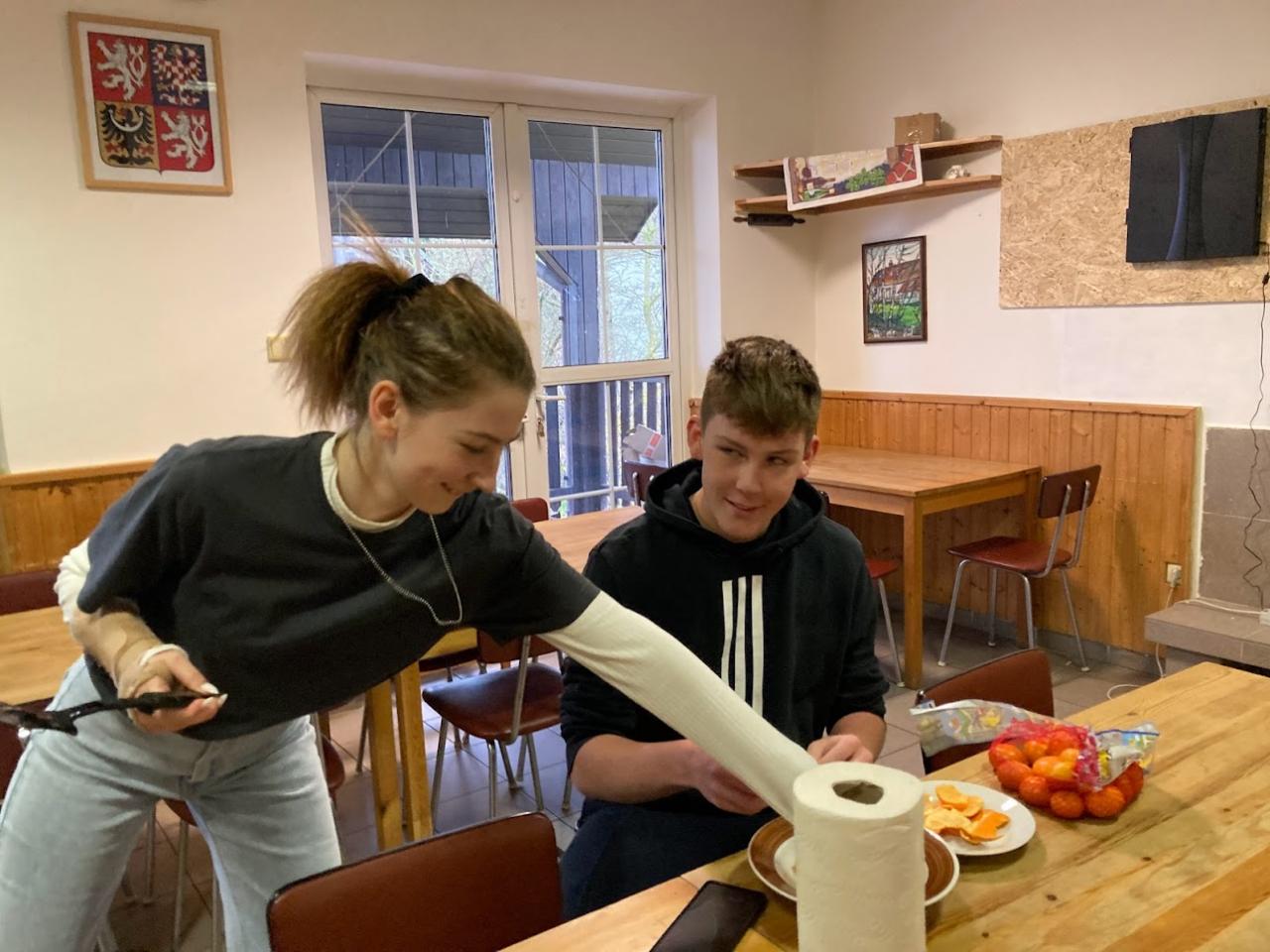 - V podvečer jsme se sešli na úřadě ve společenské místnosti, kde již Šimon a Bára připravovali pro všechny oblíbené palačinky se zmrzlinou.