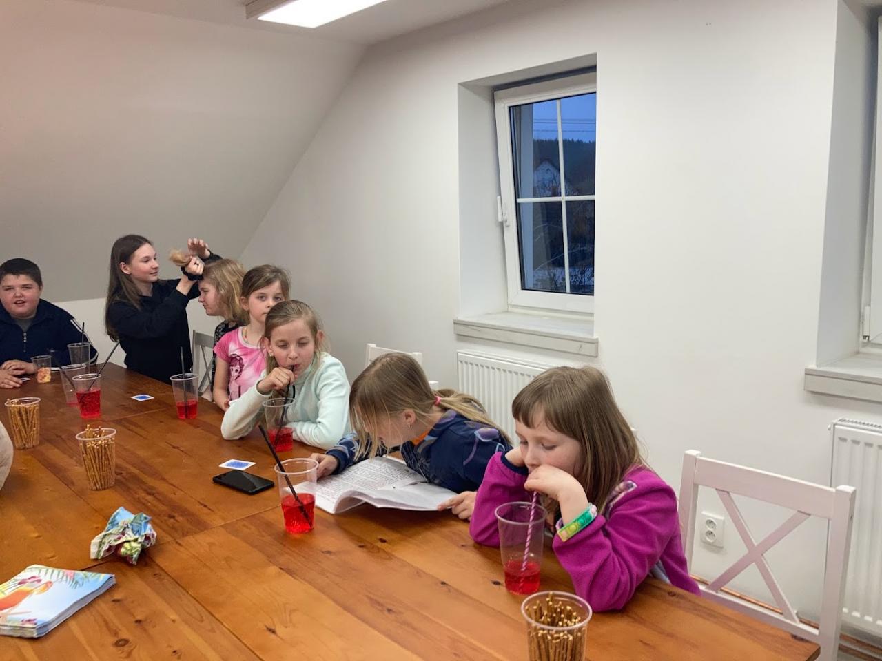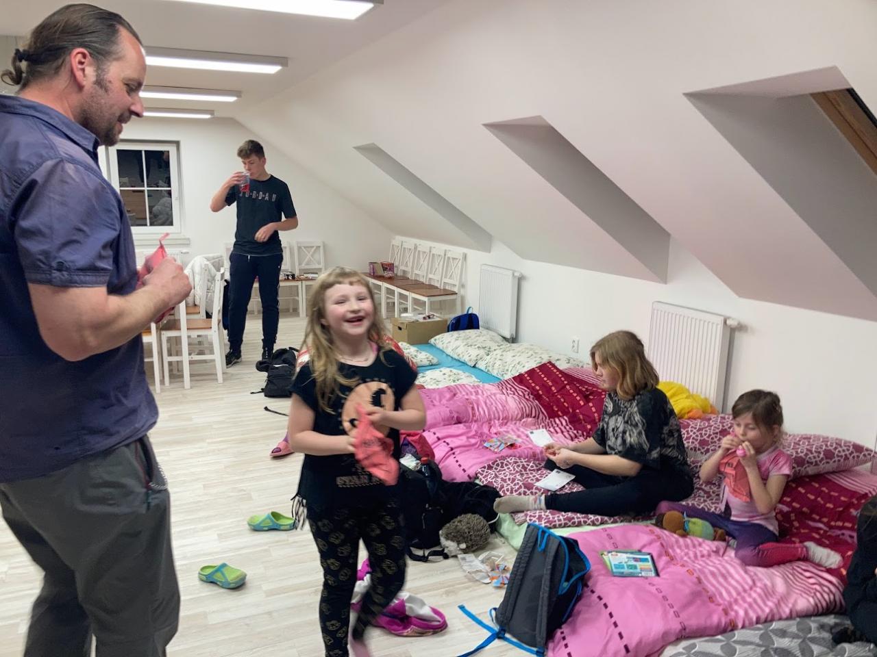 - Dnešní večer byl v duchu Apríla a samozřejmě tedy žertů, ale i čtení pohádek a her.